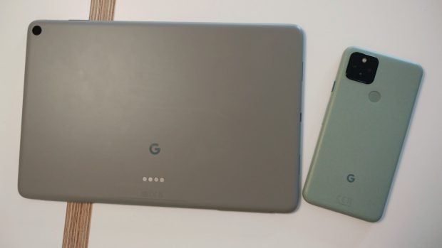Ähnliches rückseitiges Finish: Google Pixel Tablet und Pixel 5. (Foto: t3n)