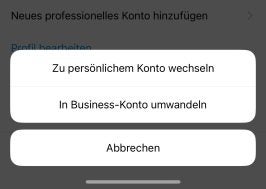 - Anschließend wählt ihr zwischen „Zu professionellem Konto wechseln“ und „Neues professionelles Konto hinzufügen“.