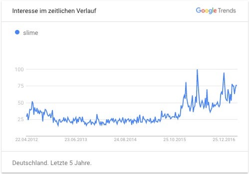 In Deutschland ist der Slime-Hype ebenfalls schon angekommen – vermutlich ebenfalls über Videos auf Instagram und Youtube. Doch offenbar nimmt das Phänomen hierzulande bei weitem noch nicht das Ausmaß an, wie es das in den USA tut.