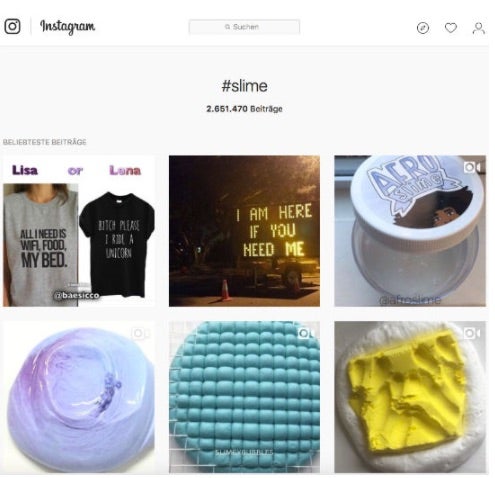 Eine Suche nach dem Hashtag „slime“ listet mehr als 2,6 Millionen Posts. (Screenshot: Instagram)