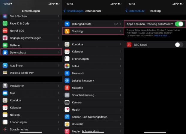 App-Tracking-Transparenz unter iOS 14.5. (Screenshots: t3n)