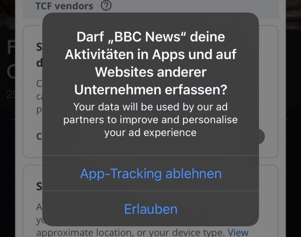 Apple erläutert, dass Betreiber mit der Einwilligung zum Tracking etwa eure Geräte-ID, euern Namen und gegebenenfalls eure E-Mail-Adresse und andere von euch bereitgestellte Daten mit Daten, die dritte Websites von euch gesammelt haben, kombinieren dürfen. Aus dieser Datensammlung könne nun personalisierte Werbung über Websites hinweg ausgespielt werden. Ebenso könnten eure Daten an Datenbroker weitergegeben werden.