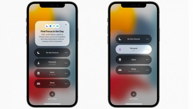 „Fokus“: iOS 15 mit neuer Nicht-Stören-Funktion. (Screenshot: Apple/t3n)