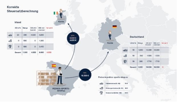 Eine weitere Besonderheit: Die Händler müssen für ihre Waren in jedem europäischen Mitgliedstaat die entsprechenden Umsatzsteuersätze kennen, um die korrekte Besteuerung in den 27 EU-Mitgliedstaaten sicherzustellen – die ist nämlich komplett unterschiedlich.