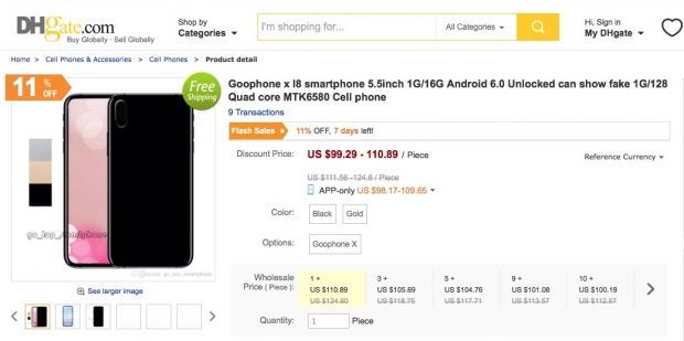 iPhone-X-Klon Goophone X buhlt mit Billigpreis um Käufer. (Screenshot: DHGate/t3n.de)