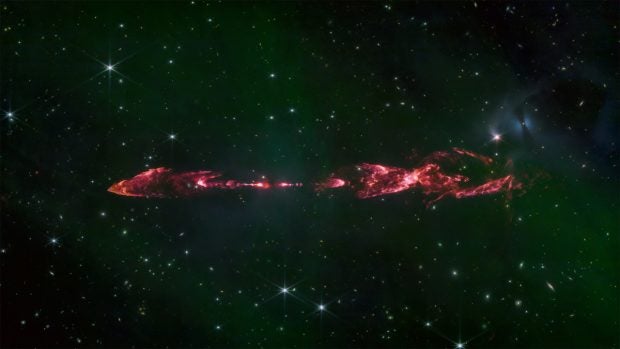 Das James Webb Space Telescope (JWST) setzt seine Reise durch das Weltall fort und schenkt uns dabei kontinuierlich Einblicke in die Geheimnisse des Kosmos. Kürzlich hat das JWST einen bemerkenswerten Blick auf einen Protostern geworfen, der Materie in Form von „kosmischem Feuer“ über große Distanzen ausstößt.