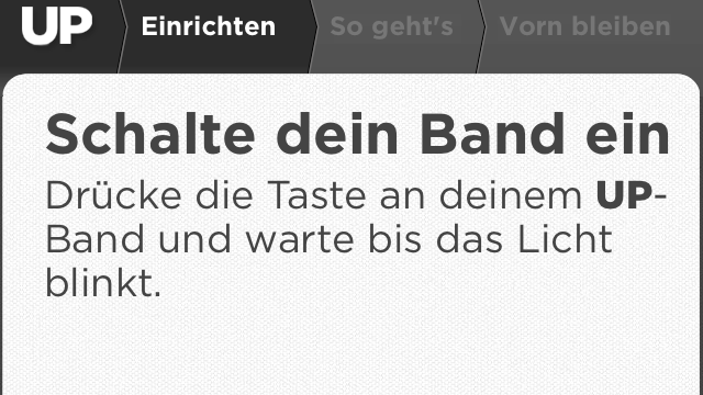 Das UP selbst kann eigentlich nur eine einzige Sache: Schritte messen. Einmal eingeschaltet, zeichnet das Armband über den eingebauten Bewegungssensor auf, wie viel man sich bewegt – mit einer Genauigkeit, die im Rahmen der Möglichkeiten aktueller Activity-Tracker liegt, doch dazu später mehr. Weder bietet das UP eine Uhr wie beispielsweise das FuelBand von Nike, noch verfügt es über einen Pulsmesser wie etwa das Withings Pulse. Alle zusätzlichen Funktionen funktionieren daher nur mit der App, die es aktuell für iOS und Android gibt.