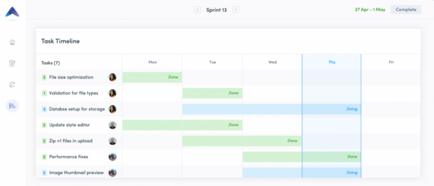 Laut eigener Aussage bietet Tara das „umfangreichste kostenlose Paket im Projektmanagement“ – die Latte liegt also hoch. Das Tool ist clean und aufgeräumt und wirbt vor allem mit der einfachen und intuitiven Bedienbarkeit. Mit nur einem Klick sollen Teams regelmäßige Sprints planen können, und dank einer Drag-&-Drop-Funktion ist auch die Planung mehrerer Sprints kein Problem.