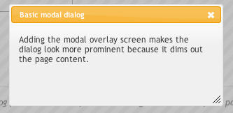 Als vorerst letztes Widget möchte ich euch noch das „Dialog“-Widget vorstellen. Darunter kann man sich eine Art Fenster vorstellen, welches sich im Browser öffnet, eine gute Alternative zu den altbackenen „alert“-Fenstern, um zum Beispiel Nutzereingaben zu bestätigen: