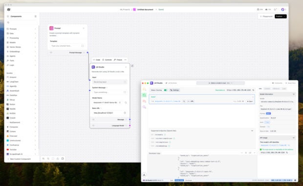Wer lokale KI-Modelle bevorzugt, kann die leicht über LM Studio oder Ollama einbinden. (Screenshot: Langflow / LM Studio / t3n)