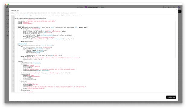 Ein Klick und ihr könnt den Python-Code jeder einzelnen Komponente verändern. (Screenshot: Langflow / t3n)