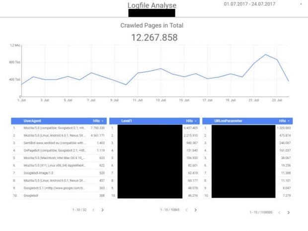 Logfile-Analyse mittels Google Data Studio. (Screenshot: Google Data Studio)
