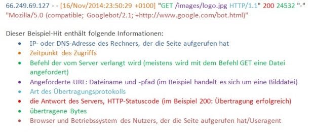 Um eine Auswertung von Logfiles vorzunehmen, müssen diese – nachdem man sie erst mühsam zusammengefügt hat – wieder in einzelne Elemente innerhalb der eigentlichen Datei zerlegt werden. Folgende Daten sind als Ausgangsbasis immer interessant: