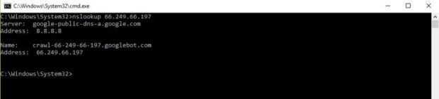 Eine der Möglichkeiten ist hier der sogenannte Reverse-DNS-Lookup mittels der Windows-Console. Aufgrund der IP können der Server und somit die Herkunft bestimmt werden. Es wird also sichergestellt, dass die IP mit dem Useragent Googlebot auch wirklich von Google kommt.