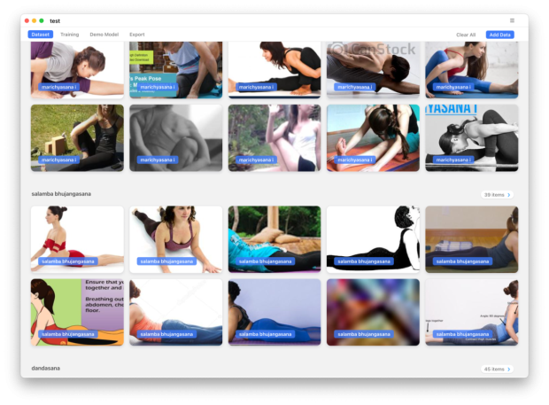Nach Auswahl der Projektart müsst ihr im nächsten Schritt eure Trainingsdaten hinzufügen. Aber auch hier erleichtert euch Liner.ai den Start, indem es euch alternative eine Reihe von öffentlichen Trainingssätzen zum Download anbietet. Im Fall der Bilderkennung könnt ihr dann Trainingssätze auswählen, mit denen euer Modell beispielsweise erkennen kann, ob auf einem Bild eine Katze oder ein Hund abgebildet ist. Oder auch: Welche Yogapose auf einem Bild zu sehen ist.