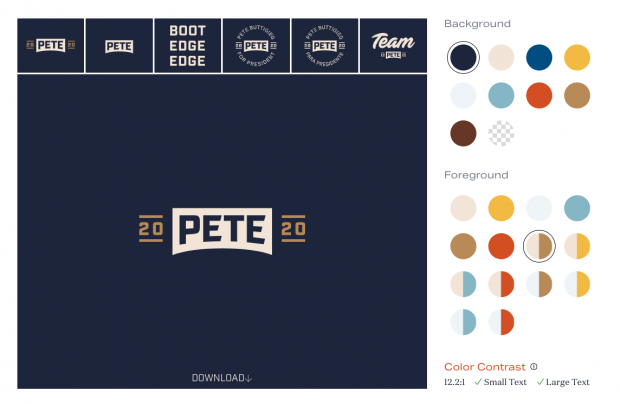 Als Pete Buttigieg, Bürgermeister von South Bend, Indiana, Anfang des Jahres seine Kandidatur für die US-Präsidentschaft ankündigte, ging der Demokrat einen innovativen Weg: Er stellte seinen Anhängern einen cleveren Online-Design-Baukasten zur Verfügung, mit Logos, Bildern, Schriften und den neun offiziellen Farben der Kampagne.