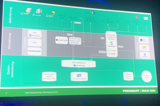 Fressnapf stellte seine Marktech-Lösung in einem wenige Minuten langen Pitch vor. Laut Thomas Oberste-Scheemmann, VP Loyalry and CRM bei der Fressnapf Tiernahrungs GmbH, habe bei ihrem Ansatz der Gedanke an die Interaktion mit den Kund:innen 2024 eine Basis gebildet.