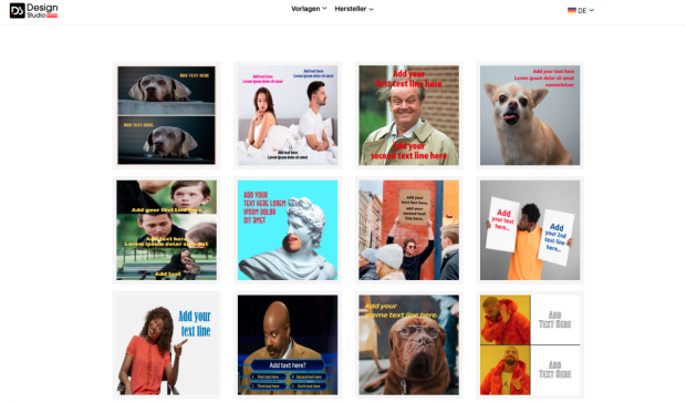 Die Vorlagen bei Design Studio sind eher für klassische Memes geeignet. (Screenshot: Design Studio / t3n)