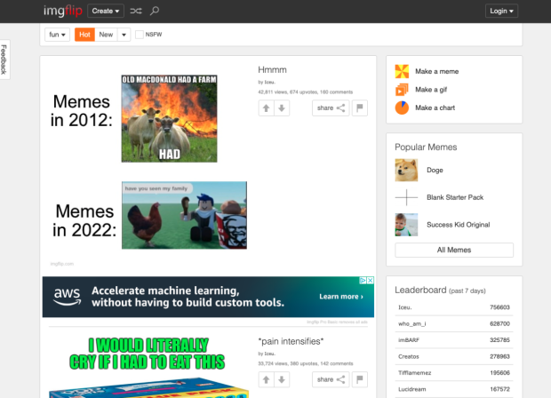 Bei Imgflip können nicht nur Memes erstellt, sondern auch angeschaut werden. (Screenshot: Imgflip / t3n)