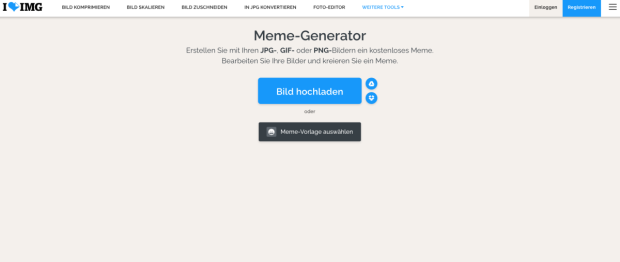 Der Meme-Generator bei Iloveimg ist einfach gehalten – viele individuelle Gestaltungsmöglichkeiten gibt es nicht. (Screenshot: Iloveimg / t3n)