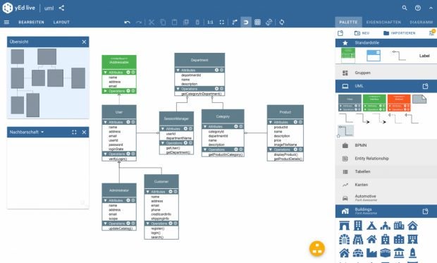 Yed Live könnt ihr kostenlos im Browser nutzen. (Screenshot: yworks.com/t3n)