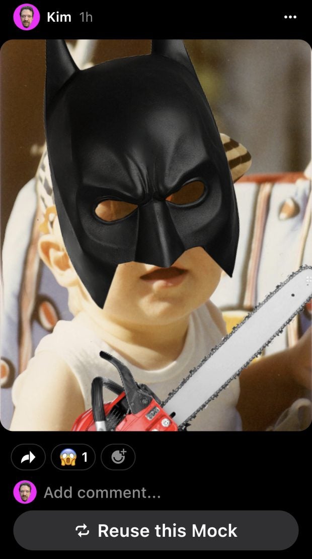 Deutlich unterhaltsamer ist allerdings die Funktion „Reuse Mock“. Damit könnt ihr direkt ein Remake des erstellten Bildes anlegen. Auch hier werden die – eventuell bereits bearbeiteten – Personen auf dem Bild automatisch freigestellt, dann können sie wieder ganz neu arrangiert werden.