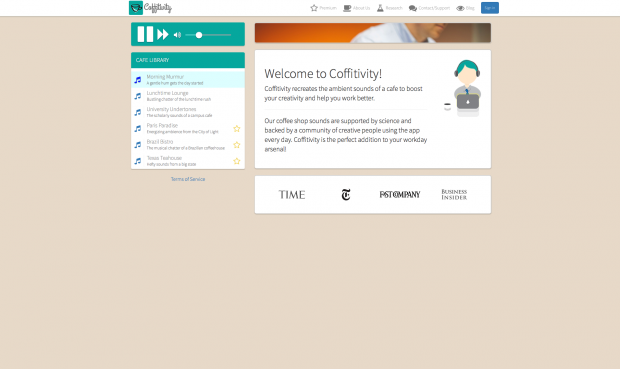 Wir lieben sie, die Kaffeehaus-Atmosphäre. Sie soll die kreativen Säfte so richtig in Wallung bringen. Coffitivity bietet die richtigen Sounds dafür. (Screenshot: Coffitivity)