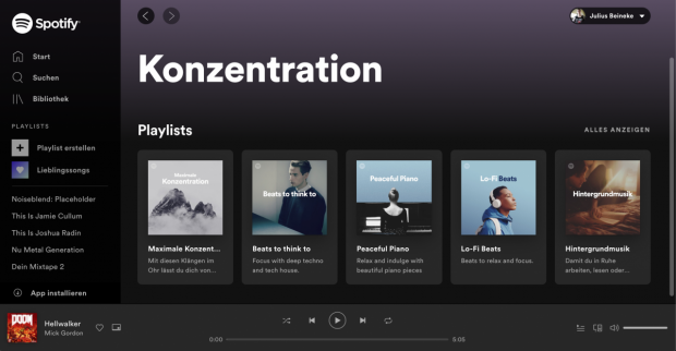 Obwohl primär ein Unterhaltungsdienst, gibt es auch bei Spotify zahlreiche Playlists, die auf das produktive Arbeiten ausgelegt sind. (Screenshot: t3n)