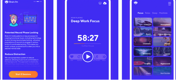 Der Dienst Brain.fm ähnelt Focus at Will: Er will euch mit neurowissenschaftlich gestützten Musiktiteln bei eurer Arbeit, beim Meditieren und beim Einschlafen helfen. Ein Algorithmus soll dafür von Künstlern produzierte Musikbestandteile hernehmen und so kombinieren, dass sie das Hirn unterstützen – beim Konzentrieren, beim Entspannen und mehr. Diese kuratierten Zusammenstellungen bekommt ihr im Rahmen eines Abos, könnt euch eure Lieblingsstücke abspeichern und sie auch herunterladen, um sie offline zu hören. Kostenlos könnt ihr fünf Sessions ausprobieren, nachdem ihr einen Account anlegt. Dann könnt ihr Brain.fm im Browser nutzen, oder als App für iOS und Android.