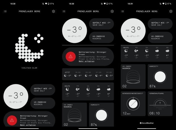 Eine von Nothing entwickelte Neuerung von Nothing OS 1.5: die Wetter-App. (Screenshots: Nothing/t3n)