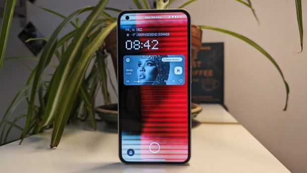 Android 13: Der Lockscreen des Nothing Phone 1 mit neuer Mediensteuerung. (Foto: t3n)