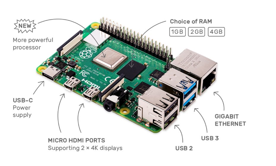 Der Pi 4 bietet wiederum Gigabit-Ethernet und vier USB-Ports, wobei immerhin zwei das Upgrade auf USB 3.0 erhalten sollen. Neu auch: Die Stromversorgung kommt jetzt nicht mehr über den in die Jahre gekommenen Micro-USB-Port wie bei den Vorgängermodellen, sondern über eine USB-C-Schnittstelle. Wieder dabei ist auch der 3,5-Millimeter-Klinkenanschluss, der als vierpolige Lösung Audio und Composite Video bietet.