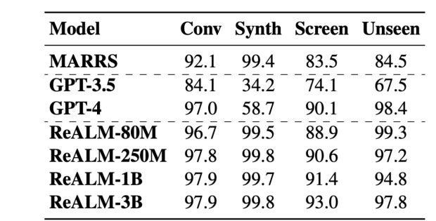 Apples KI-Modell ReaLM ist trotz geringerer Größe performant. (Screenshot: Apple)