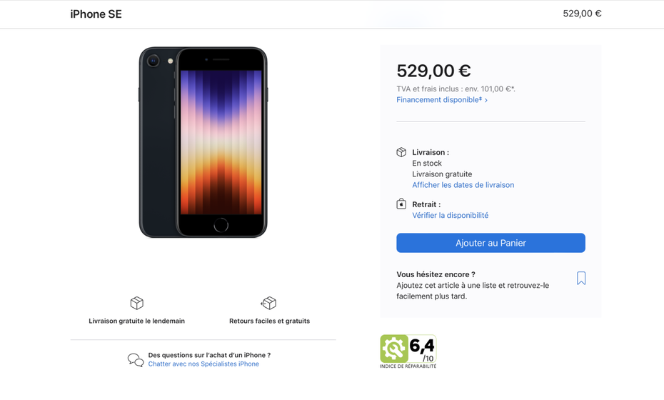 Wer in Frankreich ein Smartphone kauft, der sieht dank eines neuen Labels sofort, wie einfach das Gerät zu reparieren ist. Hier zum Beispiel im französischen Apple-Store. (Bild: Apple-Store)
