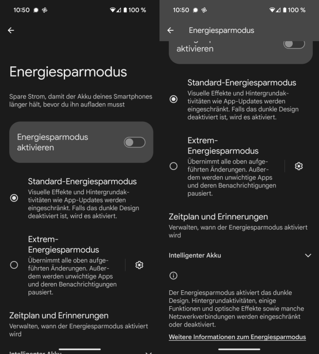 Einige Android-Geräte haben sogar einen Extrem-Energiesparmodus. (Screenshot: t3n)
