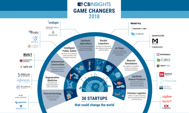 So verhält es sich auch mit dem Report „Game Changing Startups 2018“: In dem 70-seitigen Papier hat CB Insights insgesamt 30 Neugründungen identifiziert, deren Technologien im kommenden Jahr besonders großen Einfluss auf die insgesamt zehn zukunftsträchtigsten Branchen haben. Methodisch basiert die Erhebung auf einer weitgehend automatisierten Auswertung von Millionen Presseberichten sowie harten Unternehmensdaten wie beispielsweise Risikokapital oder Investoren-Renommee.