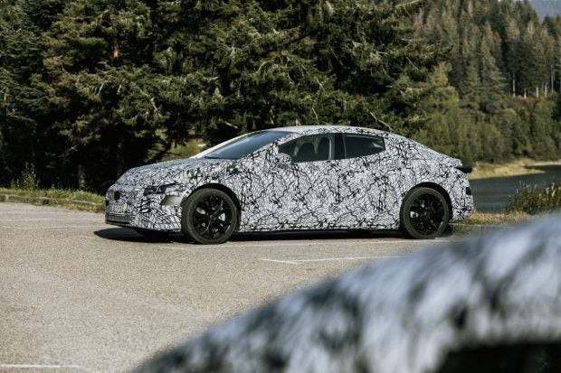 Getarnter EQE-Prototyp auf Erprobungsfahrt. (Foto: Daimler AG)