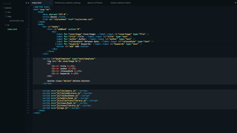 Das Glacier-Theme für Sublime Text. (Screenshot: longren.io)