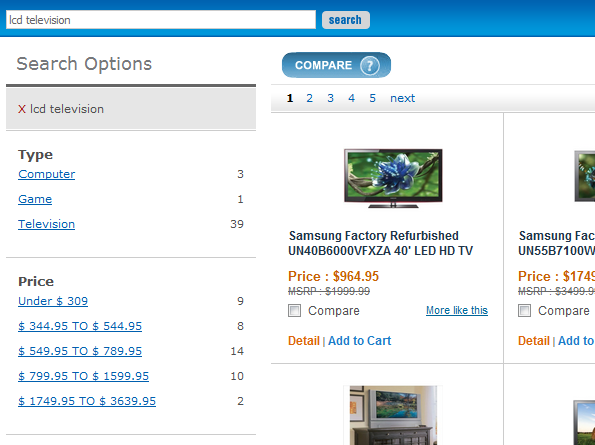 Google Commerce Search in der Version 2.0 soll bei 30.000 Shops im Einsatz sein. Ich bin bisher allerdings noch nicht darüber gestolpert. Bei Preisen ab 21.500 Euro pro Jahr dürfte klar sein, dass Commerce Search nicht für den KMU-Onlineshop in Frage kommt.