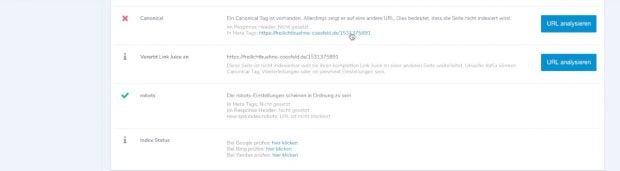Der Canonical-Tag verweist auf eine andere Schreibweise der URL (mit „https“), allerdings empfiehlt sich stattdessen eine permanente 301-Weiterleitung. (Screenshot: Christian B. Schmidt)
