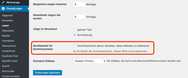 Im WordPress-Backend kannst Du mit einem (falschen) Klick bewirken, dass Suchmaschinen deine Website nicht indexieren.
