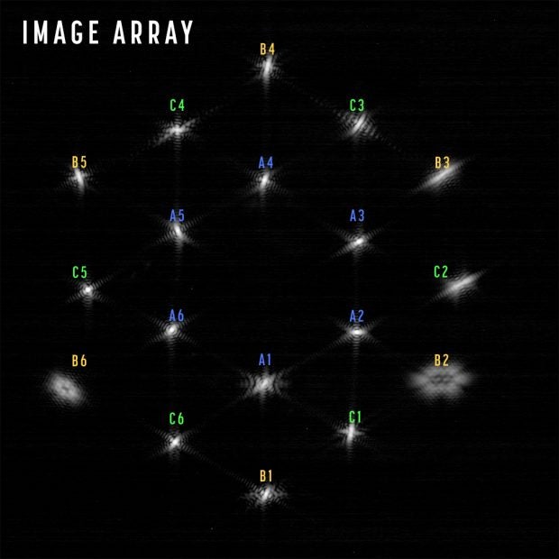 Um die 18 Spiegel dazu zu bringen, ein homogenes Bild zu erzeugen, sind etliche Kalibrierungsschritte erforderlich, die aktuell ausgeführt werden. Ist Betriebsbereitschaft erreicht, werden die 18 Spiegel ihre Bilder zu einer großen Aufnahme zufügen. Das führt dann zu einem zweidimensionalen Bild mit einer Menge an Zahlenwerten.