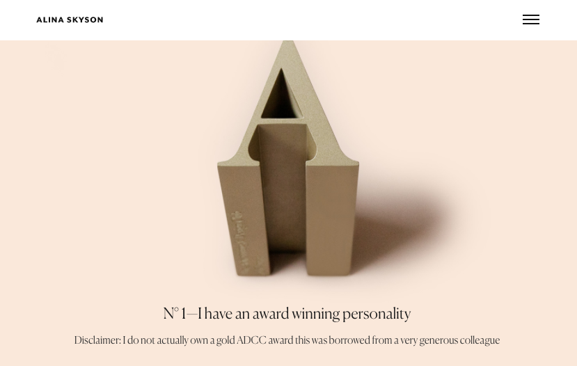 Tobias featured das Portfolio von Alina Skyson. Ihre Seite ist minimalistisch und bringt es auf den Punkt. Schau dir ihre „10 true facts about me“ an – ein einfacher Ansatz, um ihre Seite unvergesslich zu machen.