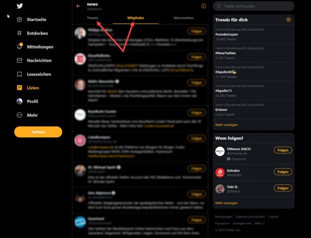 Deutlich verbessert wurde auch das Management der Listen. Es ist jetzt einfach zu erkennen, in welche Listen ihr von Mitmenschen verfrachtet wurdet. Sämtliche Optionen sind bequem über Tabs am oberen Bildschirmrand zu erreichen. Auch das Verwalten eigener Listen vereinfacht das Redesign. So sind etwa die Tweets und die dazugehörigen Mitglieder der Liste nur einen Klick voneinander entfernt.