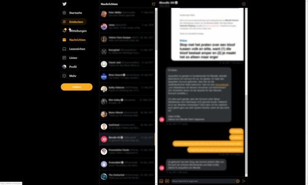 Insgesamt legt der Dienst nun seinen Fokus mehr auf die Kommunikation. So ist der Bereich der Direktnachrichten wie ein E-Mail-Client aufgebaut. Links werden die Nachrichtenstränge gelistet und rechts daneben erscheinen die eigentlichen Nachrichten.