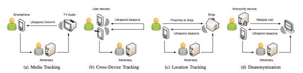 Datenschutz: Mögliche Anwendungsgebiete des Ultraschall-Trackings. (Grafik: Daniel Arp, Erwin Quiring, Christian Wressnegger, Konrad Rieck / TU Braunschweig)