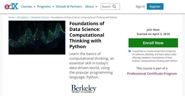 Data Science als kostenloser Online-Kurs an der Uni Berkeley. (Screenshot: edx.org/t3n.de)