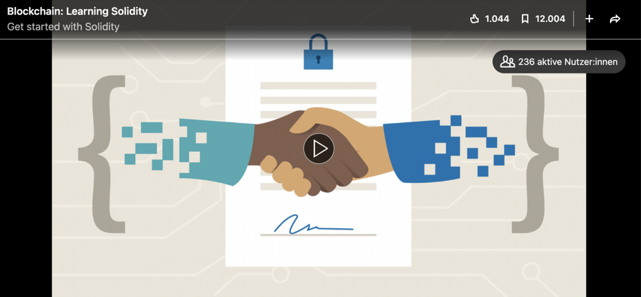 Auch bei Linkedin Learning werden Web3-Neugierige Entwickler:innen fündig. Hier bietet zum Beispiel der Kurs „Blockchain: Learn Solidity*“ eines Entwicklers namens Emmanuel Henri Hilfestellung beim Erlernen der Programmiersprache für die Blockchain.