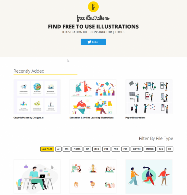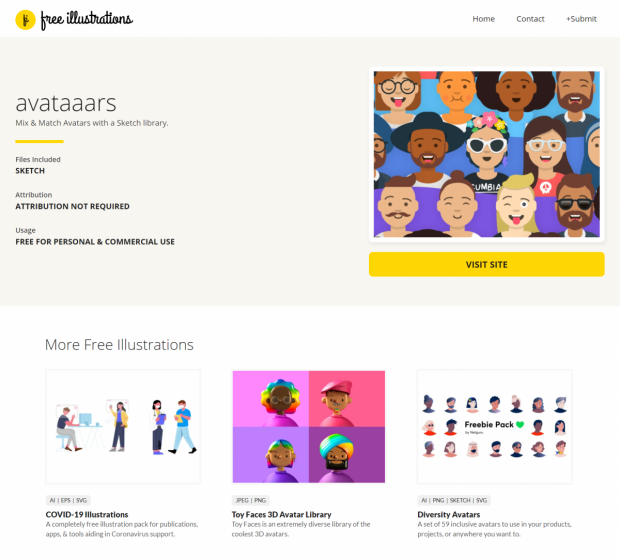 All diese Probleme erledigen sich mit der Nutzung der neuen Sammelseite Free Illustrations XYZ. Hier kuratieren nicht näher genannte Fleißarbeiter die besten Grafiksammlungen des weltweiten Netzes. Seit April dieses Jahres existiert die Seite bereits. Der letzte Neuzugang datiert vom ersten August, die Kuratoren sind also nach wie vor aktiv. Wenn ihr dem zugehörigen Twitter-Account folgt, bekommt ihr Neuzugänge jederzeit mit.