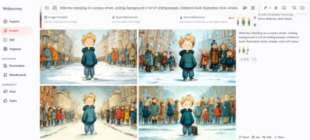 Anschließend müsst ihr zu dem Prompt für jedes Einzelbild euren Referenzcharakter auswählen, indem ihr auf Add Image und dann auf Omni Reference klickt. Jetzt solltet ihr über eure gesamte Bildergeschichte hinweg einen gleich aussenden Hauptcharakter zur Verfügung haben.